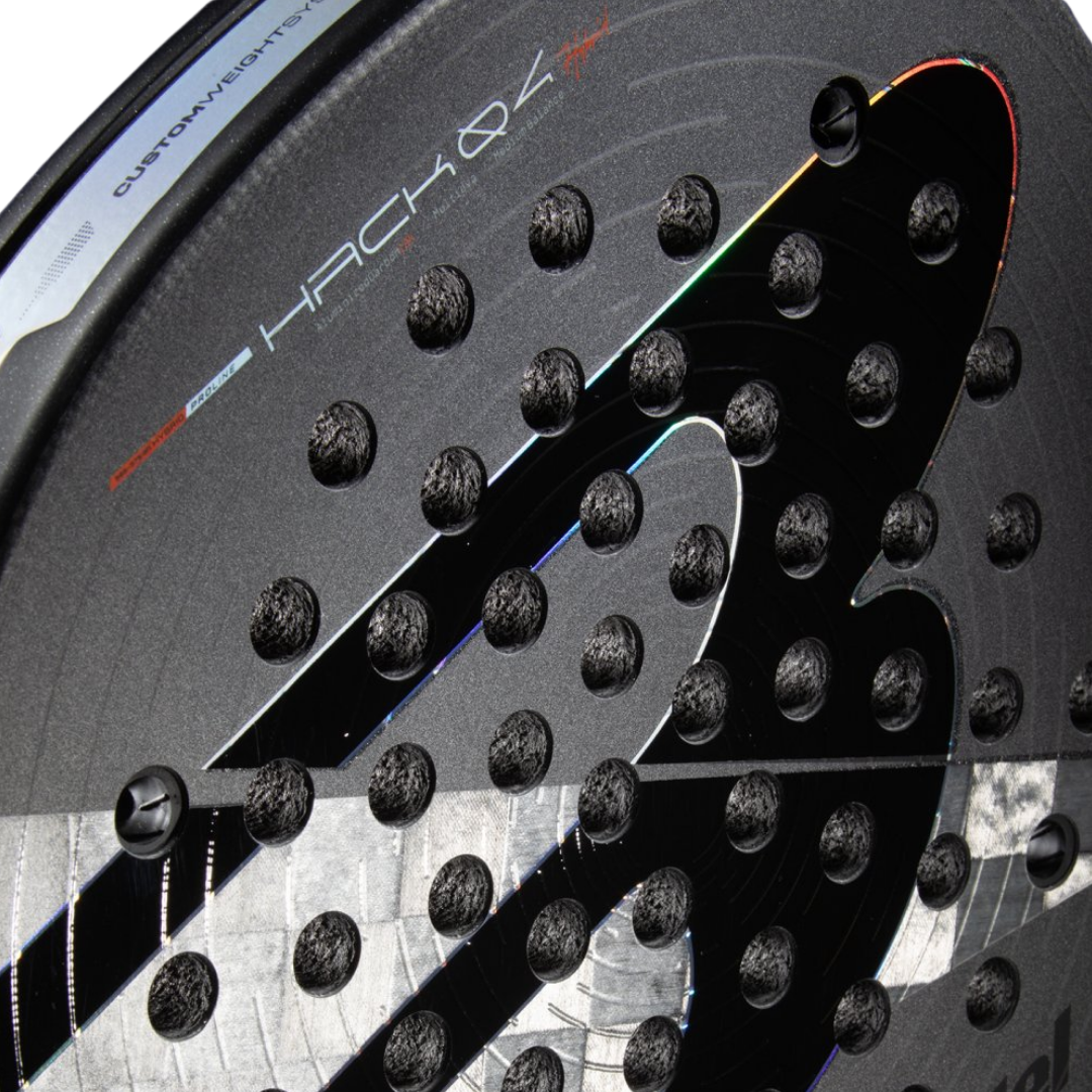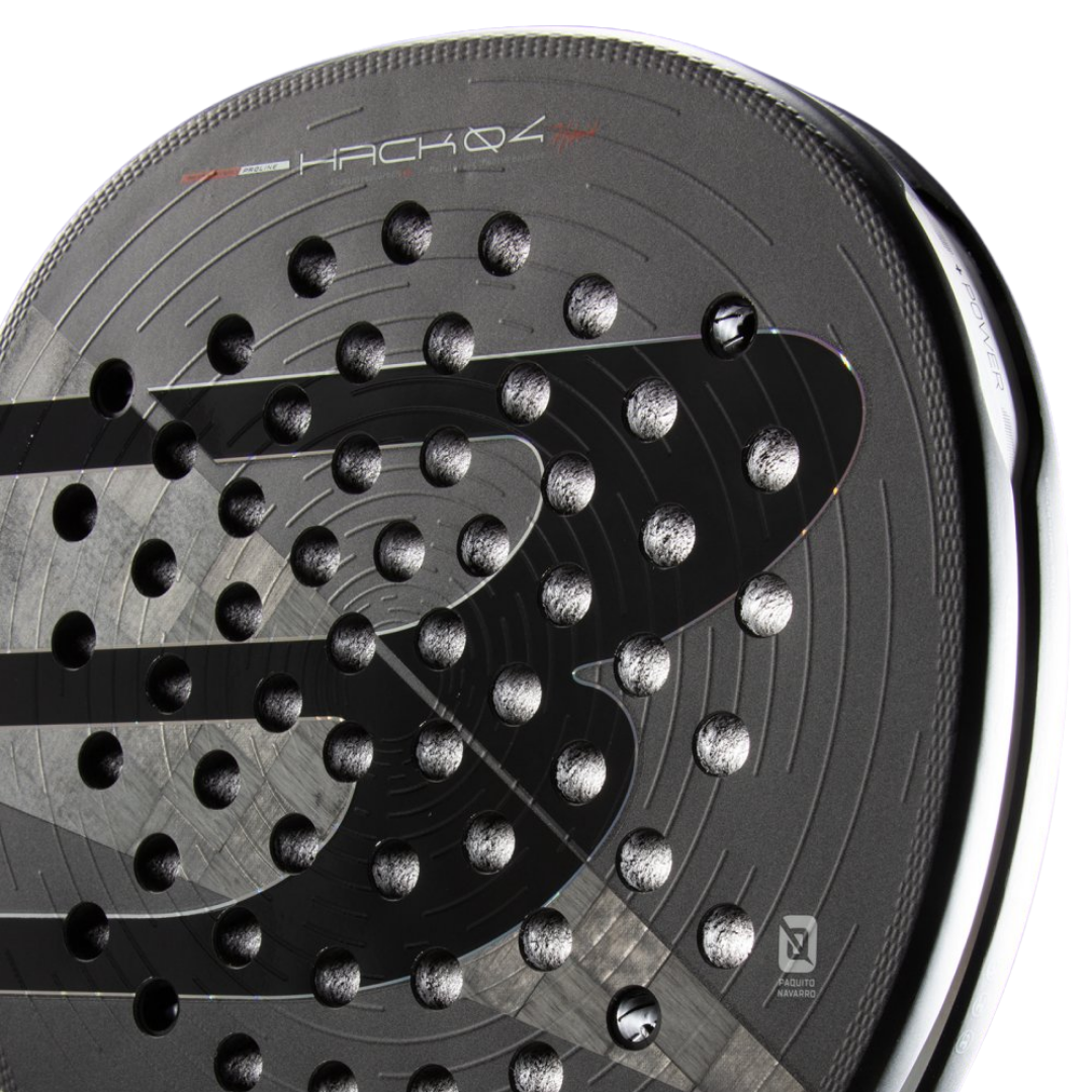 Una pala diseñada con la tecnología Total Channel y un triple puente en el corazón. Este formato híbrido la convierte en la opción ideal para jugadores que buscan dominar el contraataque, combinando control con potencia. Con la HACK 04 Hybrid, desatarás un vendaval en cada movimiento, aprovechando al máximo su capacidad de respuesta.