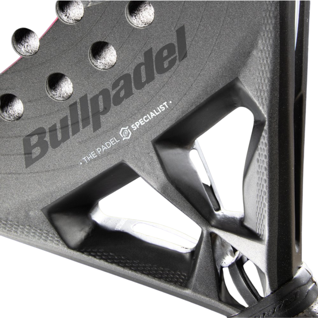 AIR REACT CHANNEL: Primer canal de aire en el corazón de una pala de pádel. Mejora aerodinámica, agilidad y velocidad de ejecución, además de reforzar la estructura y aumentar la salida de bola.