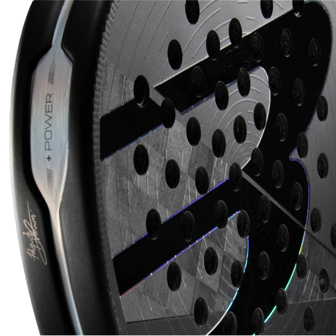 ALUMINIZED CARBON A-18K: Fibra híbrida de carbono y aluminio (18K) que ofrece un tacto elástico y cómodo. Mejora control, absorbe vibraciones y facilita una reacción rápida de la bola, ideal para contraataques y transiciones veloces.