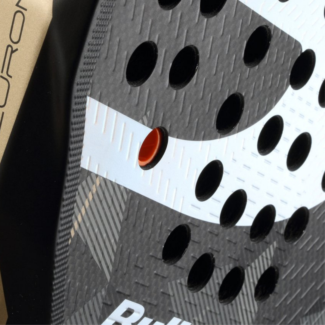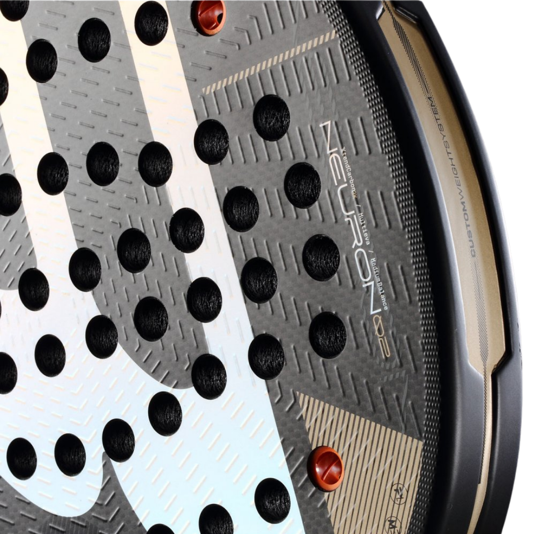 Su marco PrismLock, inspirado en la triangulación estructural, refuerza la pala reduciendo torsiones y asegurando firmeza en los momentos más exigentes. El Neuron Core potencia la estabilidad y el control al canalizar y distribuir la energía del golpe.