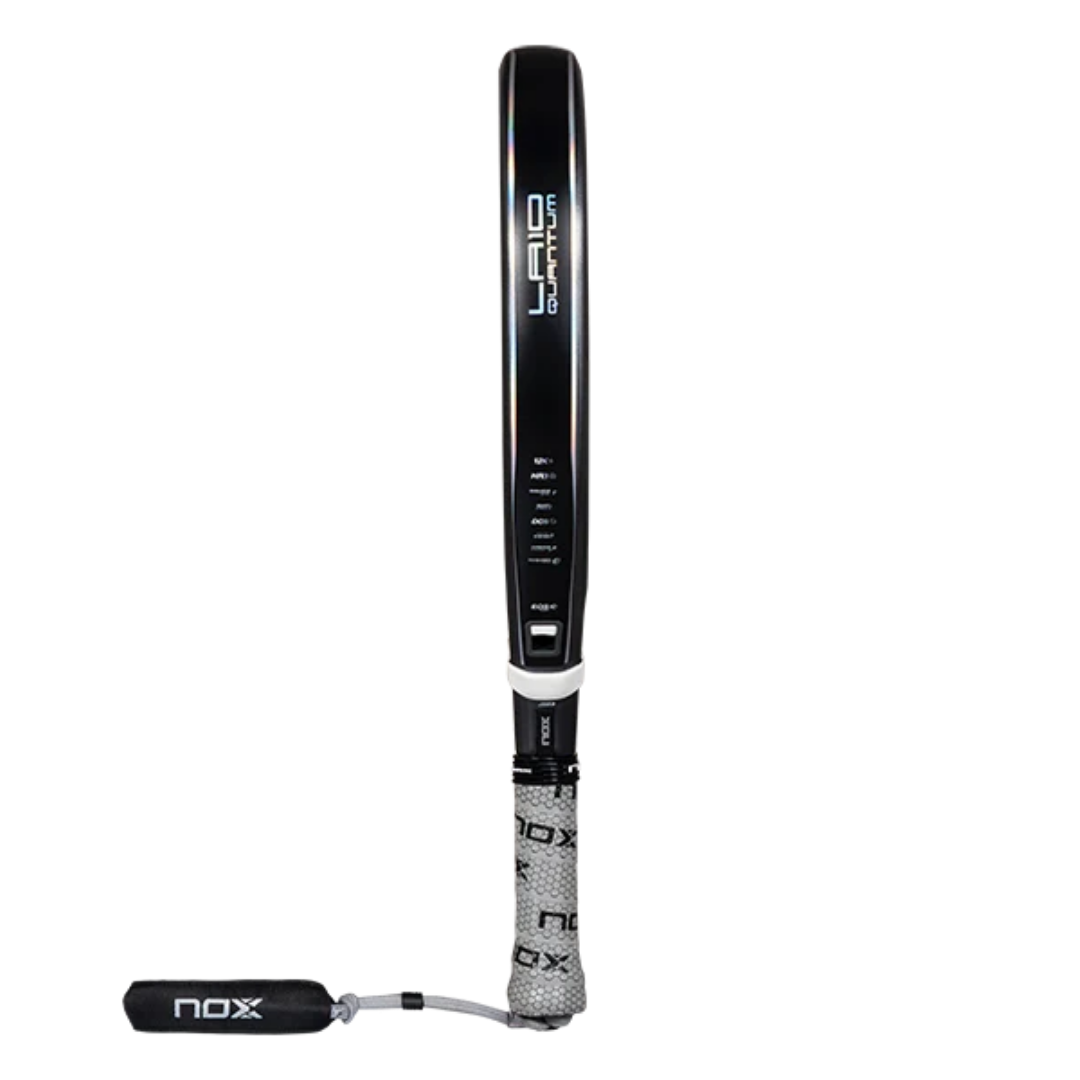 Pala Nox LA10 Quantum 12K 2025, la pala de Leo Augsburger para la temporada 2025. Un nuevo molde que también alarga ligeramente el puño. En los laterales se ha incorporado la tecnología EOS Flap, unas perforaciones que mejoran la manejabilidad y redistribuyen el peso de la pala. La Quantum 12K combina fibra de carbono 12K y núcleo HR3 Color Eva ofreciendo una sensación de golpeo excepcionalmente cómoda, con un tacto intermedio.