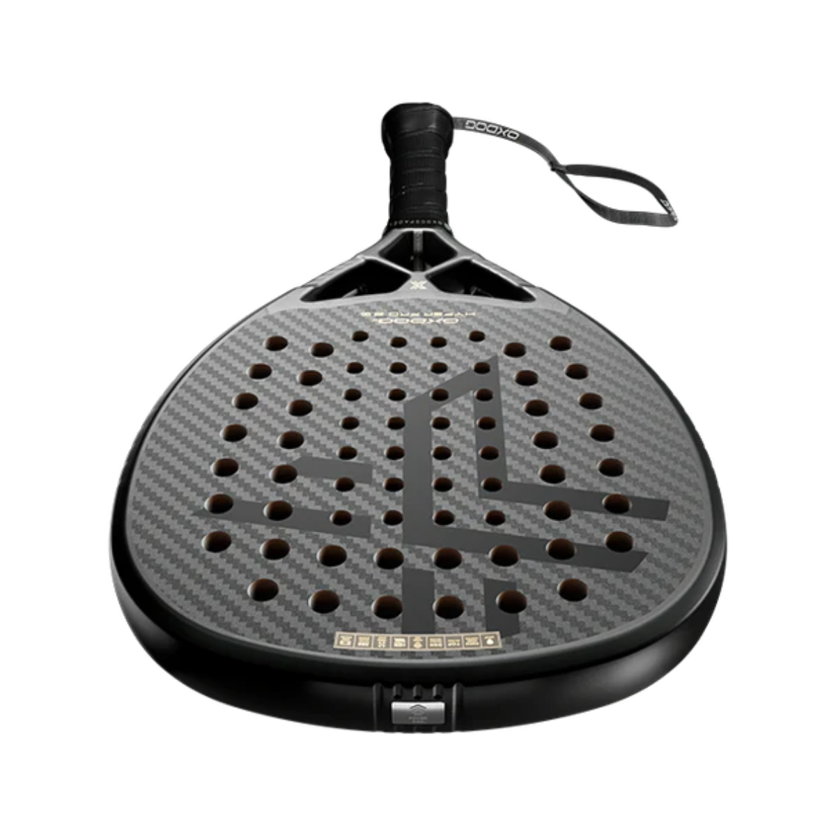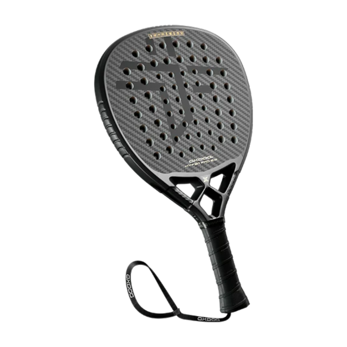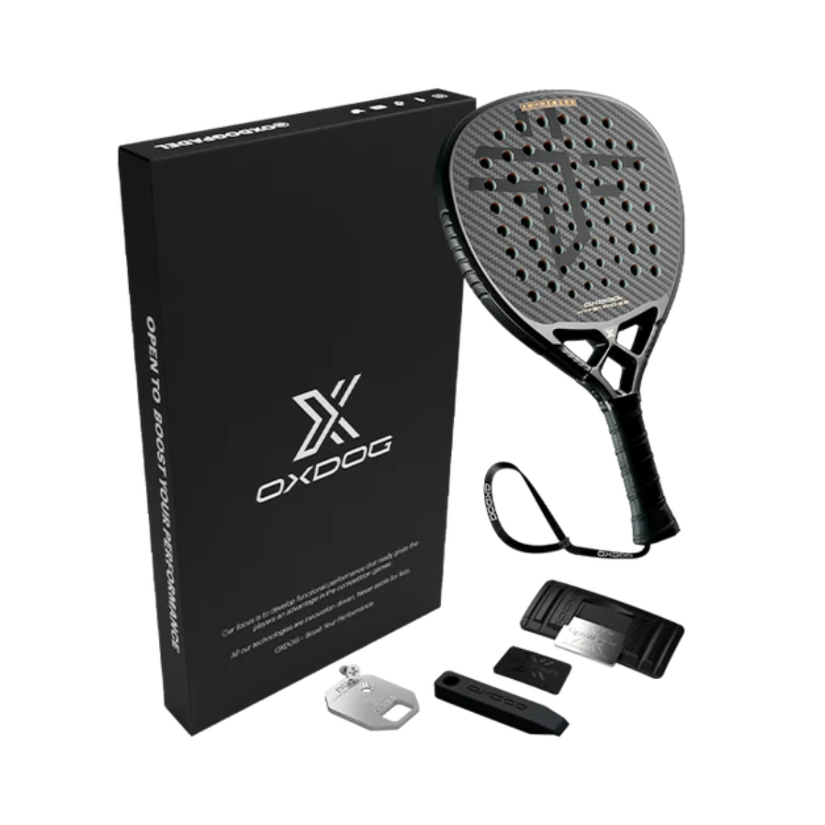 Pala Oxdog Hyper Pro 2.0, una pala con forma de lágrima, balance alto y tacto medio-duro para desatar todo tu potencial tanto en la red como en el fondo de la pista. Su diseño destaca por su elegancia gracias a la predominancia del color negro y la sutileza en los detalles del dorado.