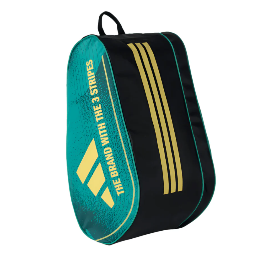 Paletero Adidas Control color verde con un amplio compartimento central para ropa y equipo deportivo. En un lateral integra un bolsillo adecuado para almacenar tu pala. as correas acolchadas y ajustables se adaptan perfectamente a tus hombros, brindando una comodidad excepcional durante el transporte.