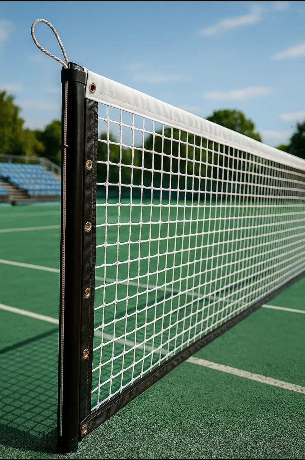 Red de pádel profesional con malla blanca de alta resistencia, diseñada para brindar máximo rendimiento en cualquier tipo de cancha.